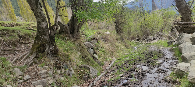 En esta época y debido al deshielo de la nieve o manantiales, algún pequeño tramo del GR 11 en su fase inicial se encuentra embarrado y se tiene que buscar una alternativa de unos metros (superior o lateral fácil).