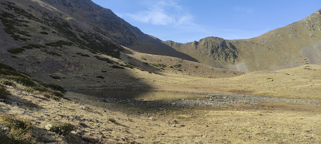 Tras reacondicionarse el nuevo horario (cambio de hora, -1), desayuno tempranito y en marcha, con un amanecer desde el Refugio con unas vistas de ensueño con un juego de colores espectacular (foto w.07), cogiendo el sendero que continúa (GR 11) tras el refugio en dirección al Port de Perafita, sendero fresado, marcado e hitado todo el mismo hasta el Collet de Sant Vicenç (w.11), punto donde abandonamos el GR para girar a nuestra izquierda en dirección al citado Port de Perafita (w.12), aquí el aire se empezó a hacerse notar y la sensación térmica descendió, pero al iniciar el ascenso prolongado pero fácil hasta el Tossal de la Truita / Pic de Perafita, se entró en calor con mas facilidad, con lo cual se compensó una con la otra situación, tras esos 750 mts de longitud, con 175 de mts. de desnivel positivo en unos 30 minutos, llegando a esa cima en la que inmortalizaremos con las fotos correspondientes el momento(w.13), deleite de las vistas en sus 360º, con lo que iniciaremos el tramo mas engorroso y entretenido , pero que mas se disfruta personalmente, en principio el descenso hasta el Coll de la Claror, similar en todos los parámetros de ascenso desde el Port de Perafita, pero en descenso con algunas fáciles destrepadas, para volver a ascender con los mismo números en distancia y desnivel positivo que las dos anteriores pero ahora empleando 1 hora en coronar su cima, con algunas trepadas mas entretenidas y tramos con tartera, propias de estas altitudes, pero reitero fáciles. Cima que coincidirá con un mojón y un vértice geodésico (w.20) y que figura como esencial en el reto de los 100 Cims de la FEEC, fotos para constancia aunque de esta cima ya tenía pero con perspectiva diferente, breve regocijo y continuar para buscar, al iniciar el descenso, un mínimo de resguardo del aire para hacer un kit-kat (w.21). Mientras reponemos fuerzas observamos la amplísima loma que nos reportará hasta el Turó Punçó una vez que alcancemos el Coll de Monturull (w.22), que tenemos a nuestros pies. Llegados al Coll de Monturull los mojones que vamos encontrando y visualizando en la distancia, nos van a servir como guías de ida y del posterior retorno hasta nuestro último objetivo del día, pasando por el Pic del Coll de la Barra (w.24) a 1 km. y desde donde solo nos quedarán 2'5 kms para alcanzar el renombrado Turó Punçó (w.28), aquí tomaremos alguna foto hacia el N. para identificar primero las cimas conquistadas hoy y posteriormente al SE para reconocer las diversas cimas de la Sierra del Cadí vistas hacia el sur pero que nos enseña su cara norte, de las cuales ya hemos pisado algunas de ellas. El regreso lo llevaremos a cabo deshaciendo nuestros pasos hasta casi el w.23, donde enlazaremos con un sendero fresado e hitado que desciende primero hasta el Bassot de Claror (w.32) y posteriormente podemos acercarnos a los Estanys Gran y Petit de la Pera (w.A y B), no obstante nosotros en el w.33 obviamos el mismo, al continuar hacia la derecha por sendero fresado paralelo al Torrent de la Claror y que posteriormente continuando por el mismo cruzaremos varias veces la pista forestal de acceso al Refugi Estanys de la Pera, llegando al aparcamiento de la Font de les Pollineres y dando por finalizado este track completo que nos ha ocupado sobre las 9 horas reales en dos jornadas, pernoctando en el refugio y que me ha facilitado lograr perpetuar personalmente, esas tres cimas. Simplemente EXCELENTE ..... Que la disfrutéis, como mínimo, tanto como yo !! (◠‿◕).